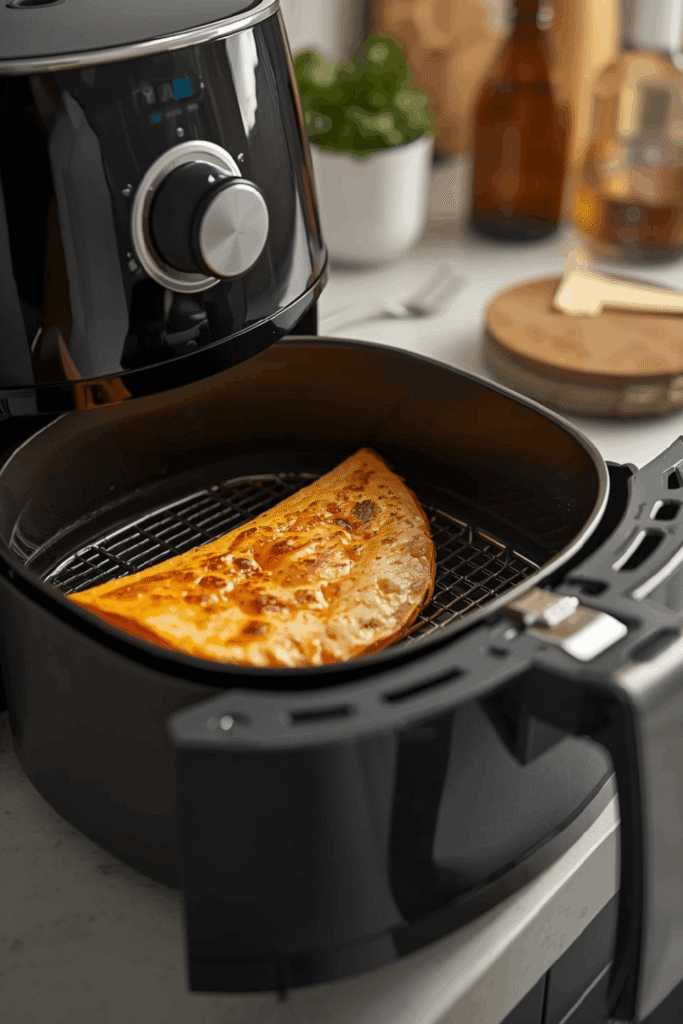 The air fryer circulates hot air evenly around the tortilla, giving you golden crispiness without greasy residue.