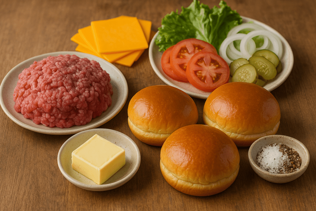 - Pickles or pickled onions – acid helps cut through the butter-rich burger flavor.