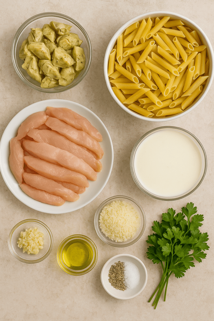 This dish is all about harmony. The cream creates a silky base, the Parmesan adds savory depth, and the artichokes cut through with tangy brightness. The chicken ties everything together with lean protein, making it a complete and balanced meal.