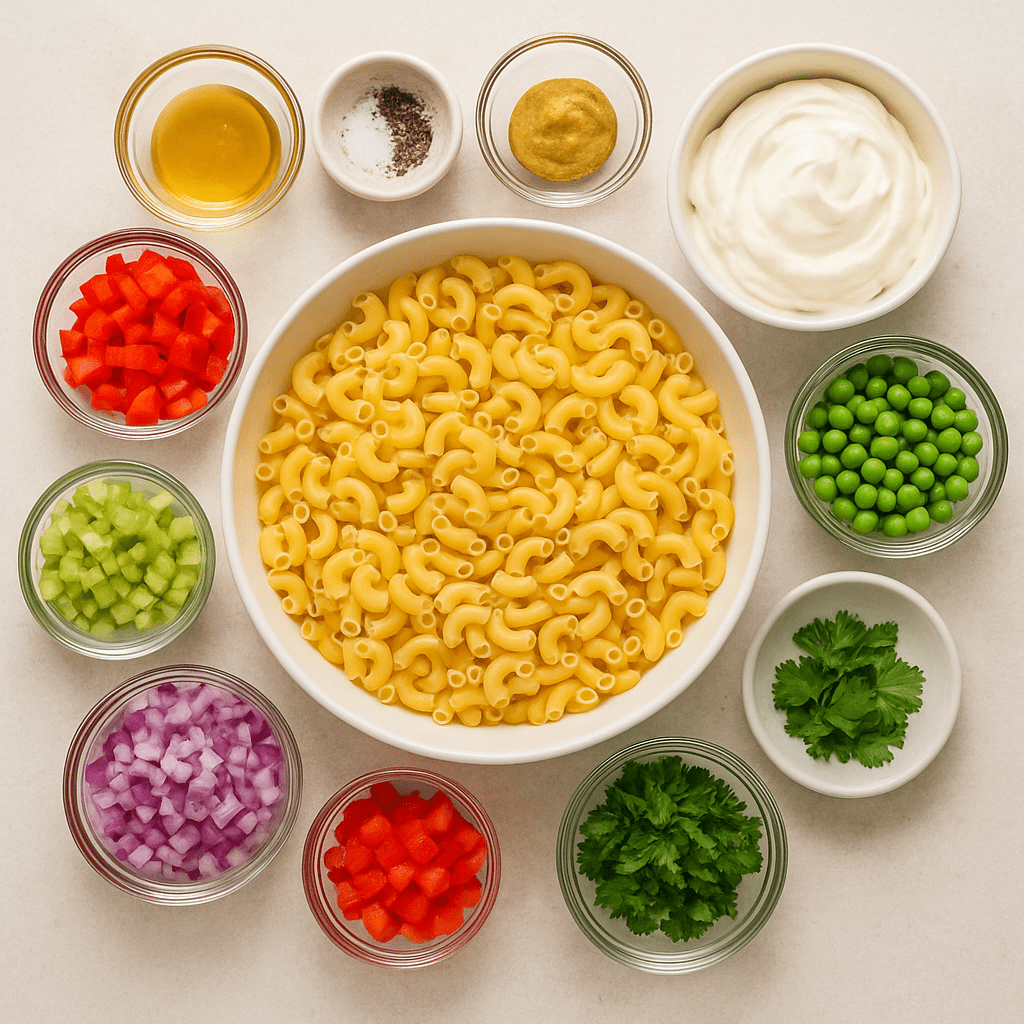 Ingredients for elbow pasta salad
