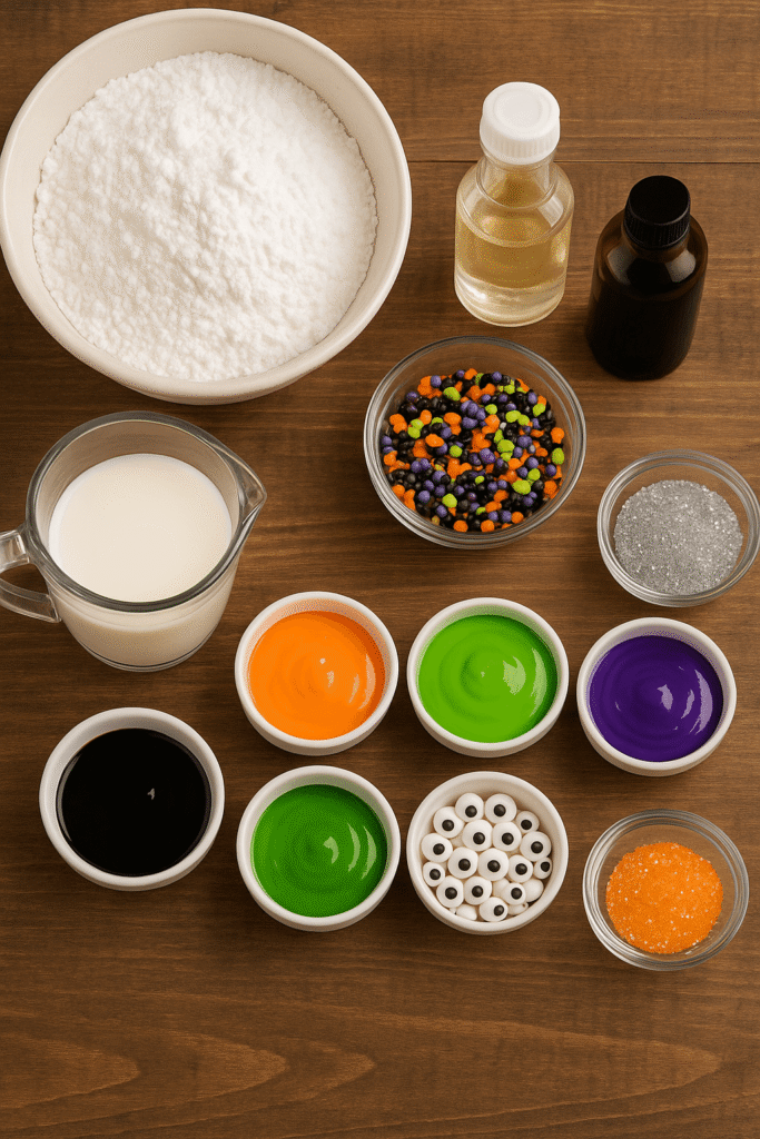 • Food coloring gels (orange, black, green, purple for Halloween vibes)