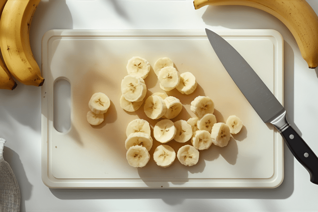 Uniform slices are the key to even crispiness. Slice each banana into thin, even rounds, around 1.5 to 2 mm thick.