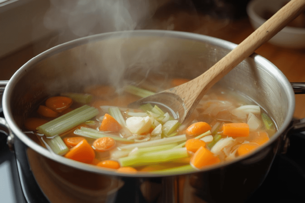This veggie trio is called a mirepoix, and it is the flavor foundation of many soups. Taking time here makes your soup taste slow-cooked even when it is not.
