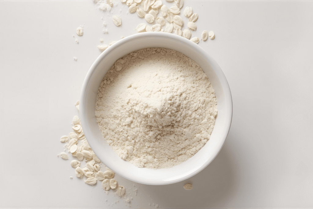Oat flour behaves differently from wheat flour because it does not contain gluten. Gluten gives dough elasticity, so oat flour cannot replace all purpose flour in every recipe without adjustments.