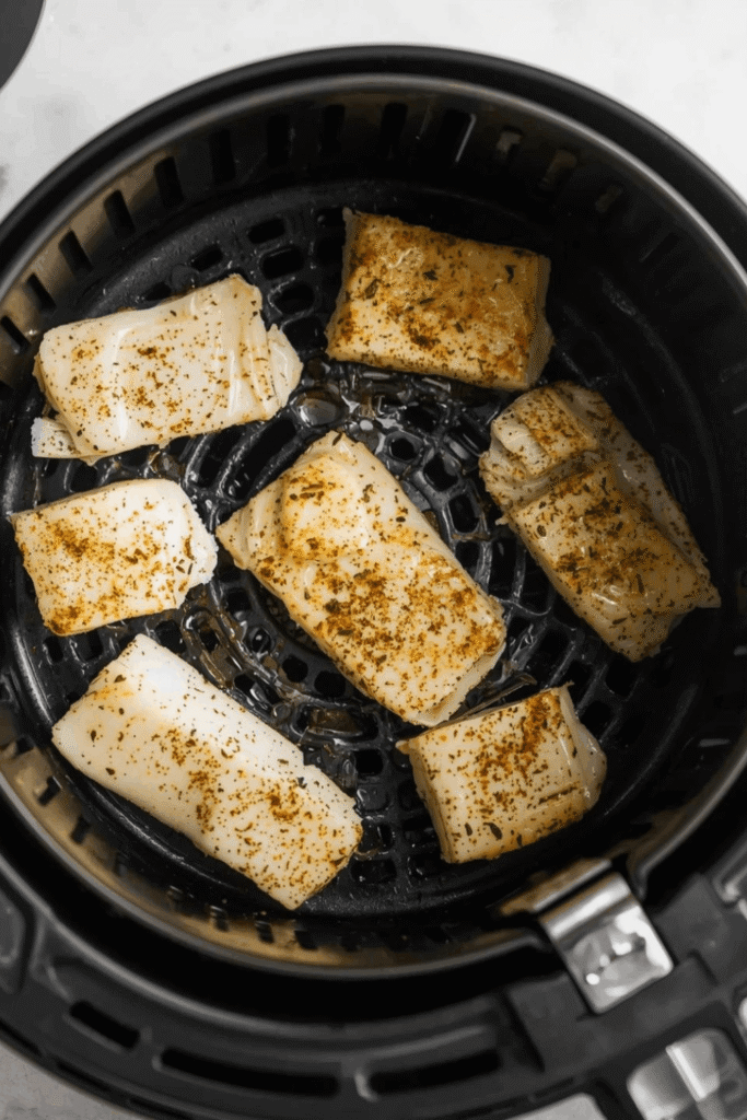 • Air fry for 8–10 minutes, flipping halfway, until the fish is golden, flaky, and cooked through. Squeeze fresh lime juice over the fish while hot.